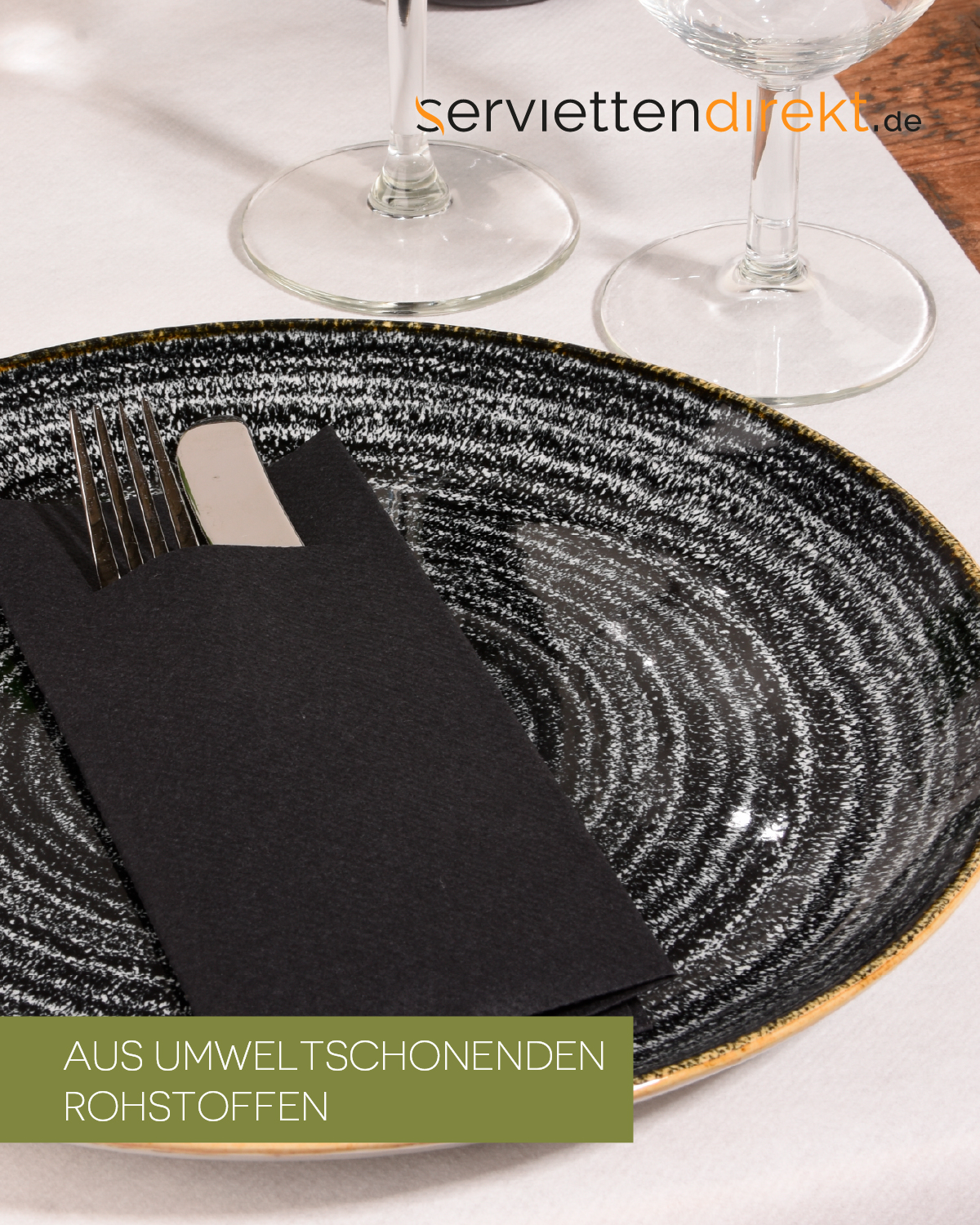 Airlaid Besteckservietten "Pub" Schwarz, 40 x 33 cm, 75 Stück - Mank