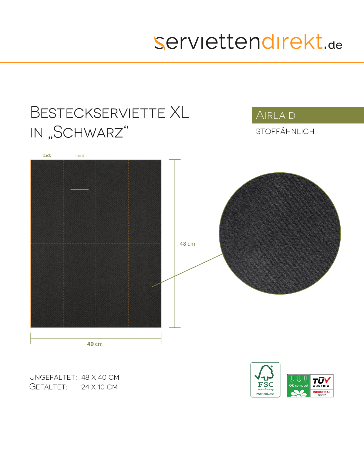 XL Airlaid Serviette in Schwarz, 48 x 48 cm, 1/4 Falz, 50 Stück - Mank