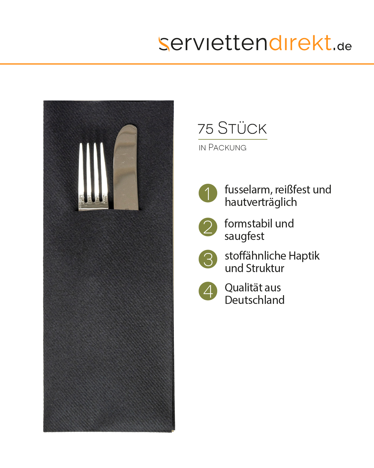 Airlaid Besteckservietten Schwarz, 40 x 40 cm, 75 Stück - Mank