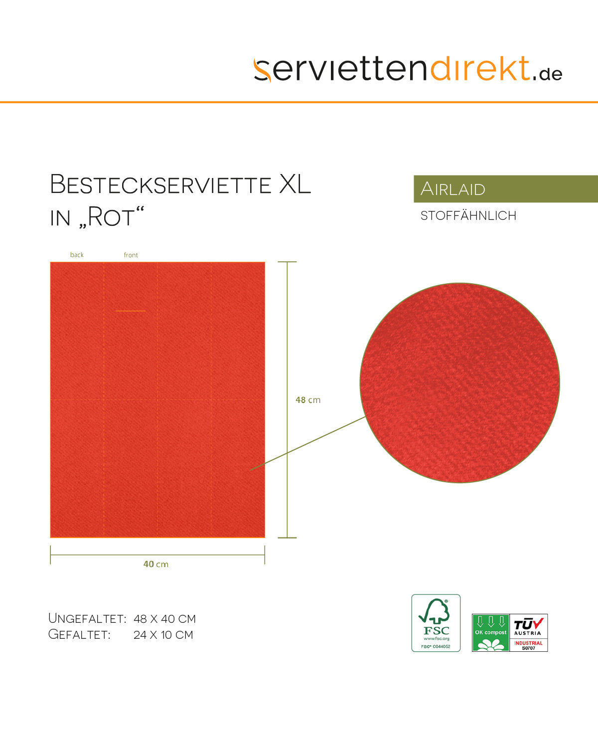 XL Airlaid Serviette in Rot, 48 x 48 cm, 1/4 Falz, 50 Stück - Mank