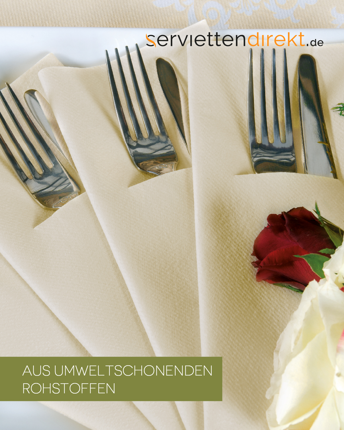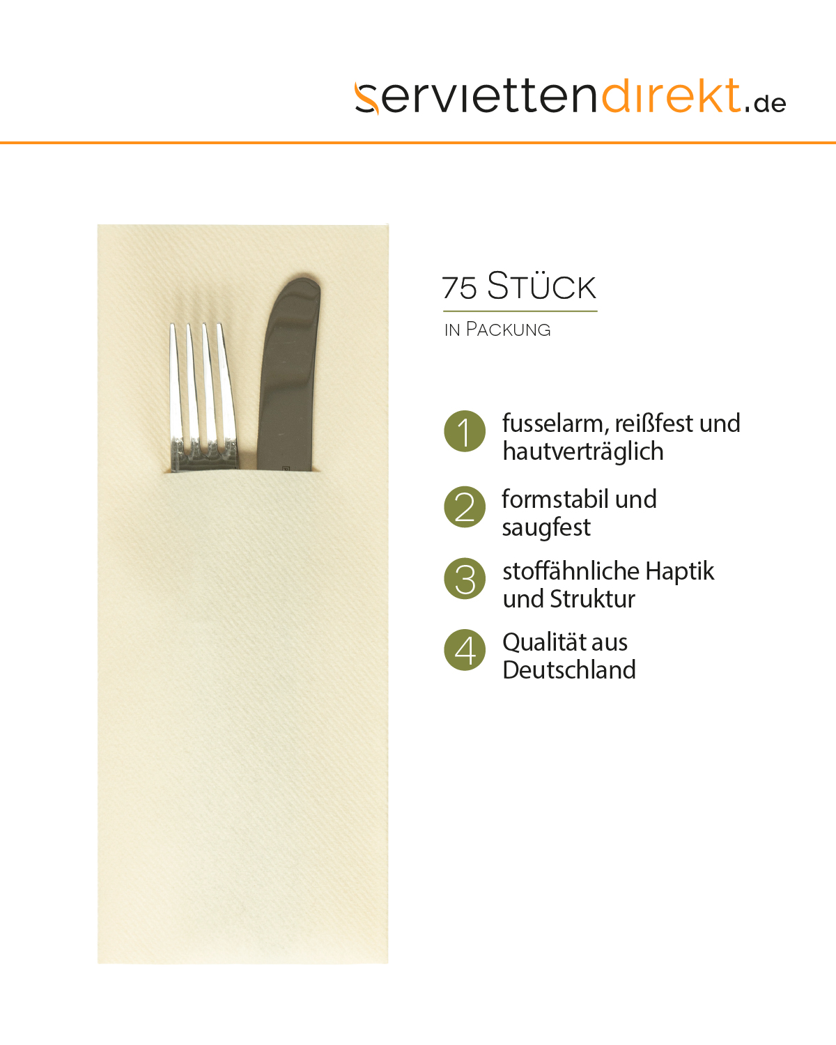 Airlaid Besteckservietten Creme, 40 x 40 cm, 75 Stück - Mank