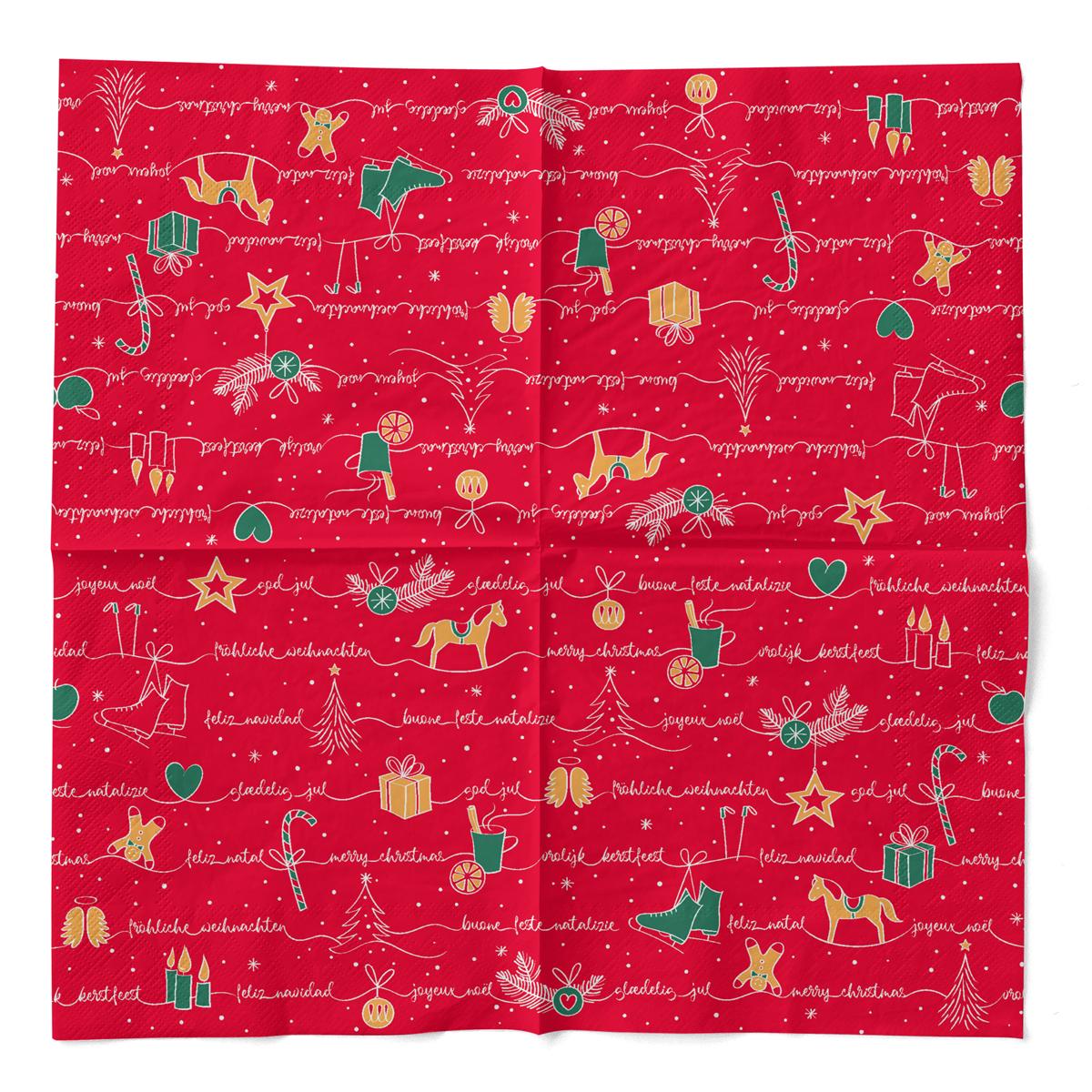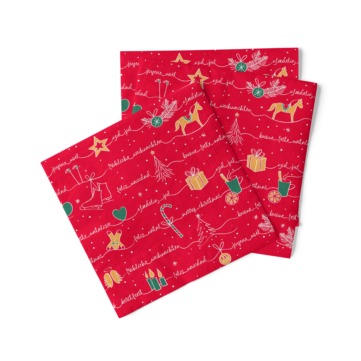 Die Mank Tissue Serviette Ravin in Rot-Grün-Gold bringt festliche Weihnachtsstimmung auf jede Tafel. Das elegante Design mit klassischen Weihnachtsfarben Rot, Grün und Gold sorgt für eine warme, dekorative Atmosphäre und passt perfekt zu Advents- und Weihnachtsfeiern, Familienessen oder Firmenveranstaltungen.