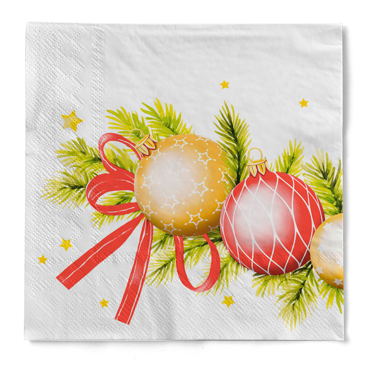 Die Mank Tissue Serviette Ravin in den klassischen Weihnachtsfarben Grün, Rot und Gold sorgt für eine stimmungsvolle Tischdekoration während der Advents- und Weihnachtszeit. Ob beim gemütlichen Familienessen, Weihnachtskaffee oder auf der festlich gedeckten Firmenfeier – diese Servietten verleihen jeder Tafel sofort festliche Eleganz.