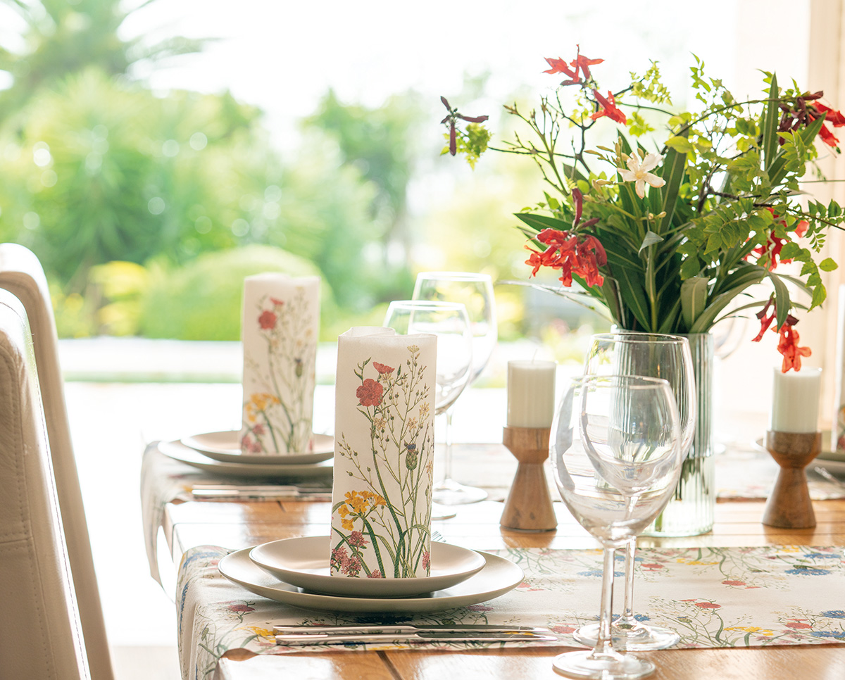 Der Mank Tischläufer Edith ist ideal für Gartenpartys, Frühlingsfeste, Sommerfeiern, Hochzeiten sowie für Restaurants und Hotels. Das florale Blumenwiesen-Design sorgt für eine freundliche, natürliche Atmosphäre und lässt sich hervorragend mit hellen, natürlichen Tischkonzepten kombinieren.