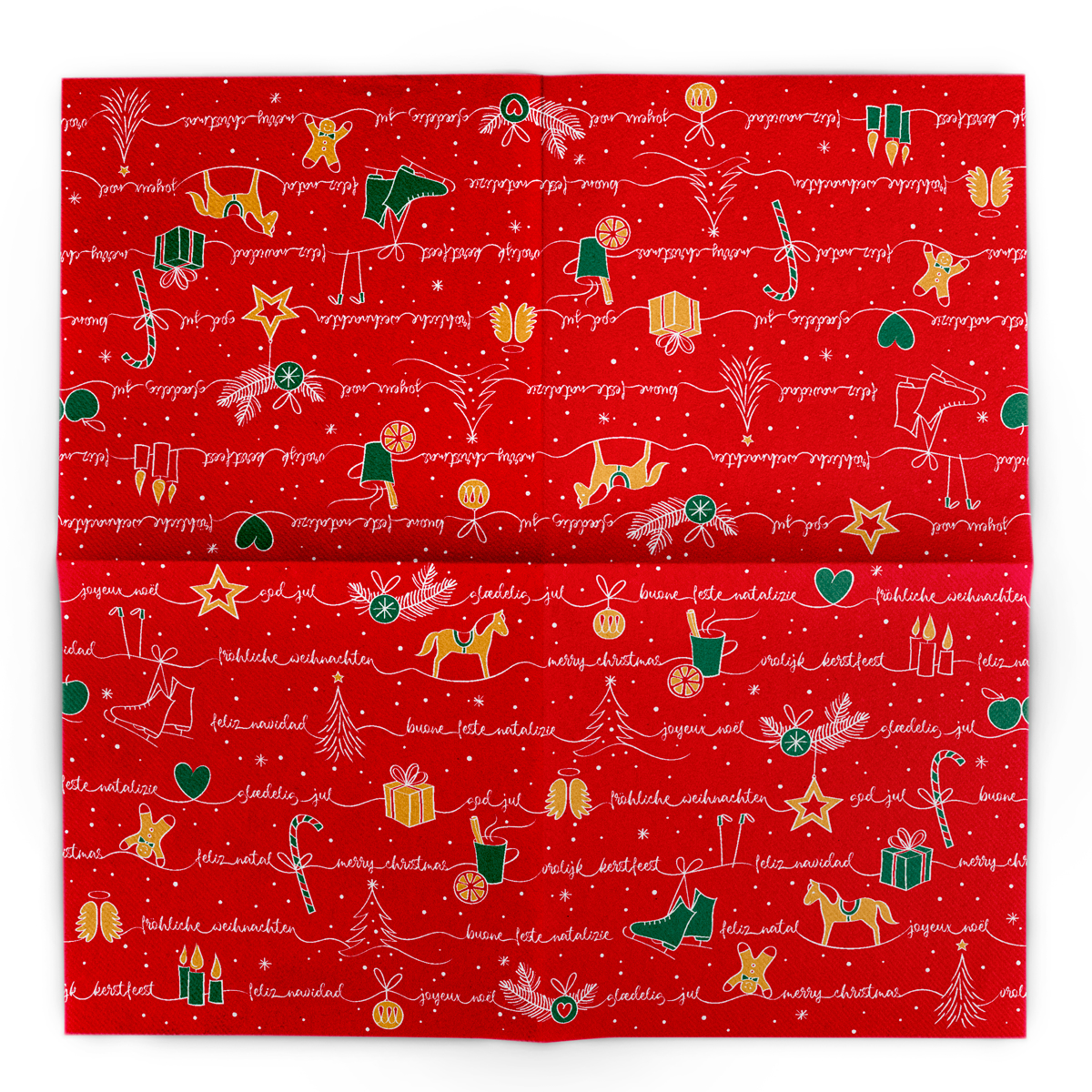 Tissue Serviette Ravin Rot-Grün-Gold, 40 x 40 cm, 100 Stück - Mank
