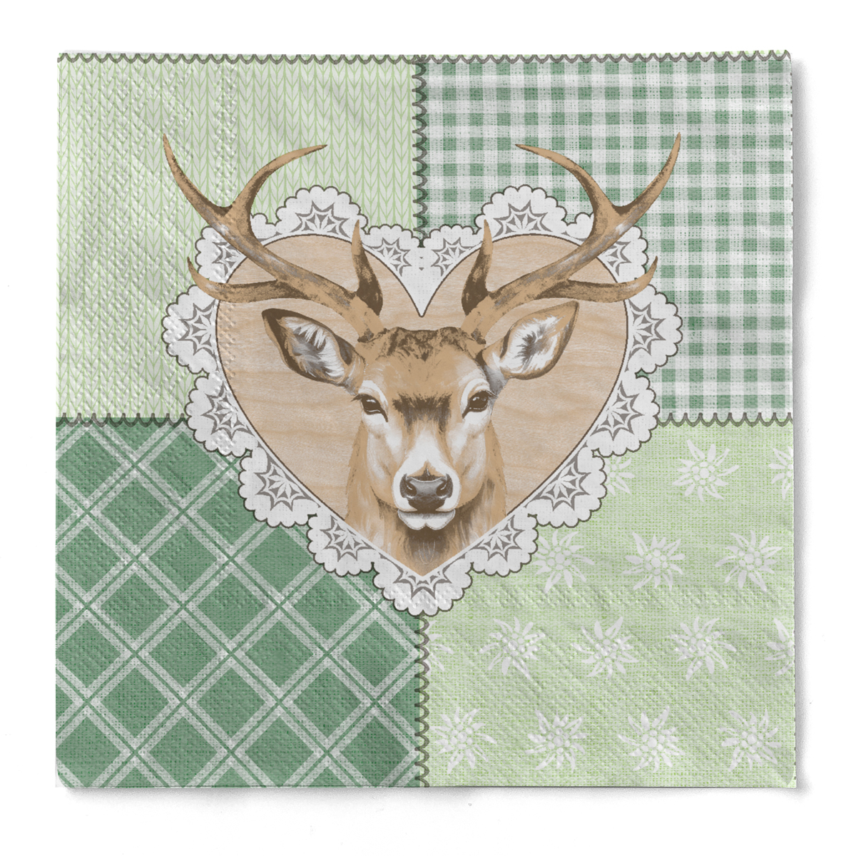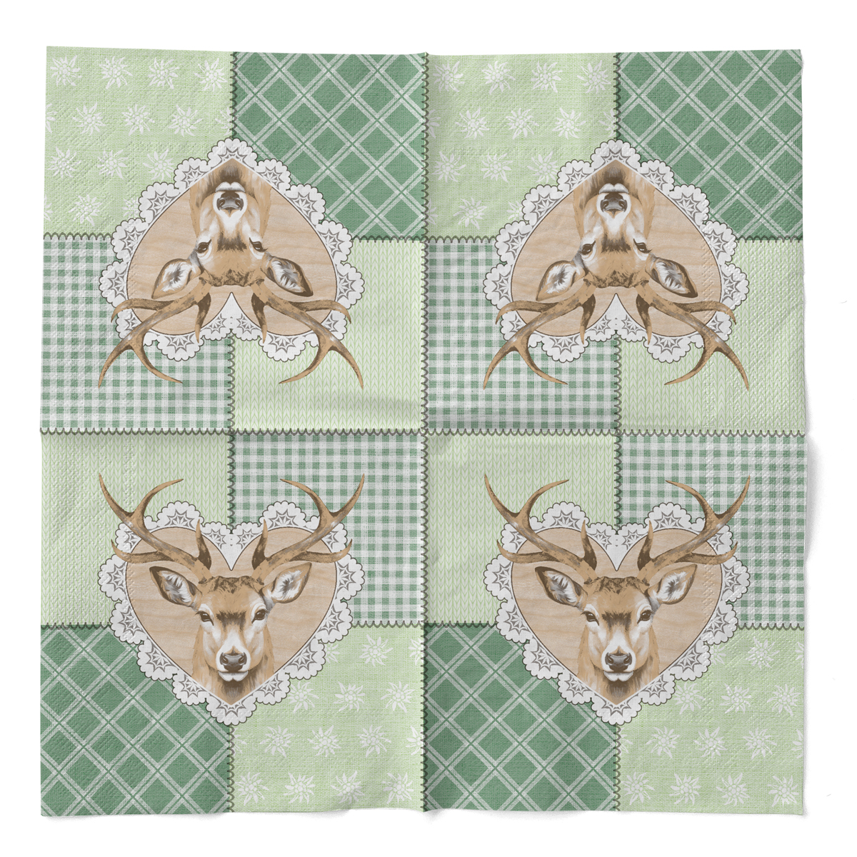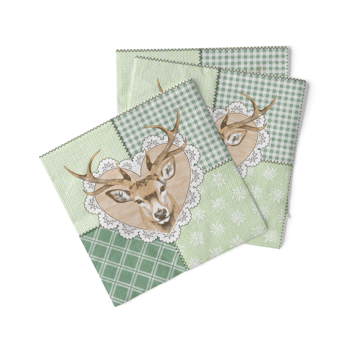 Die Tissue Serviette „Abigail“ mit Hirschmotiv von Mank vereint rustikale Gemütlichkeit mit stilvollem Design – perfekt für die Herbst- und Wintersaison, für Jagdthemen, Hüttenabende oder festliche Tischdekorationen im alpinen Stil. Das detailreiche Hirschmotiv wird von dezenten floralen Elementen begleitet und bringt eine warme, naturverbundene Atmosphäre auf jede Tafel.