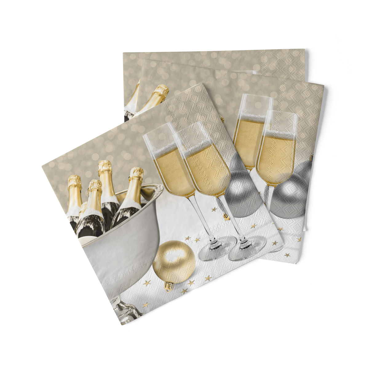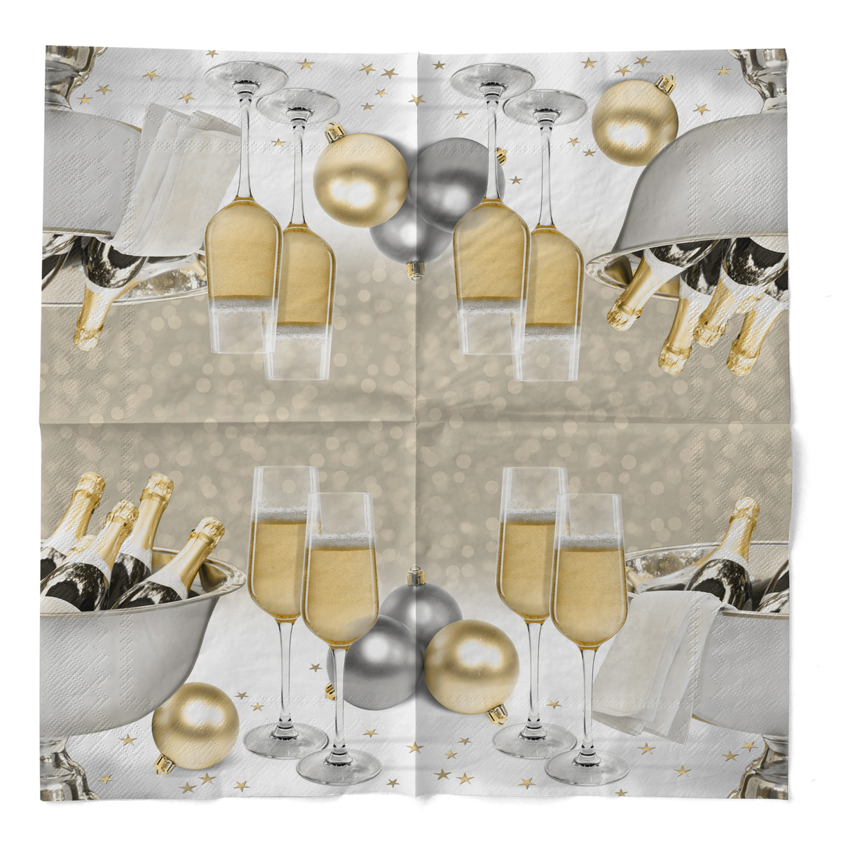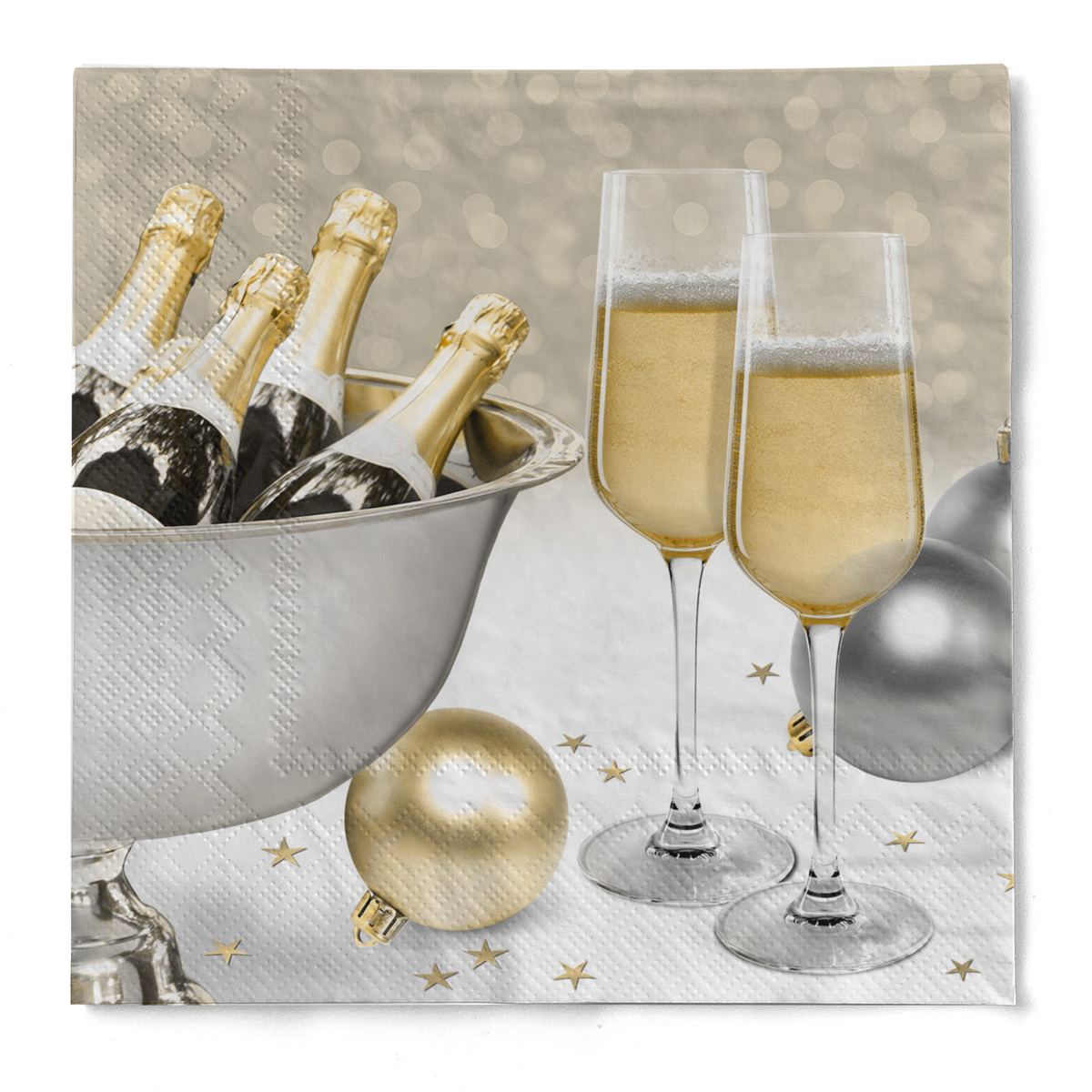 Die Mank Tissue Serviette Secco bringt eleganten Glanz auf Ihren Silvester-Tisch. Die 3-lagige Papierserviette in hochwertiger Qualität sorgt für eine stilvolle und festliche Tischdekoration und harmoniert perfekt mit goldenen, silbernen oder schwarzen Silvester-Dekoelementen.