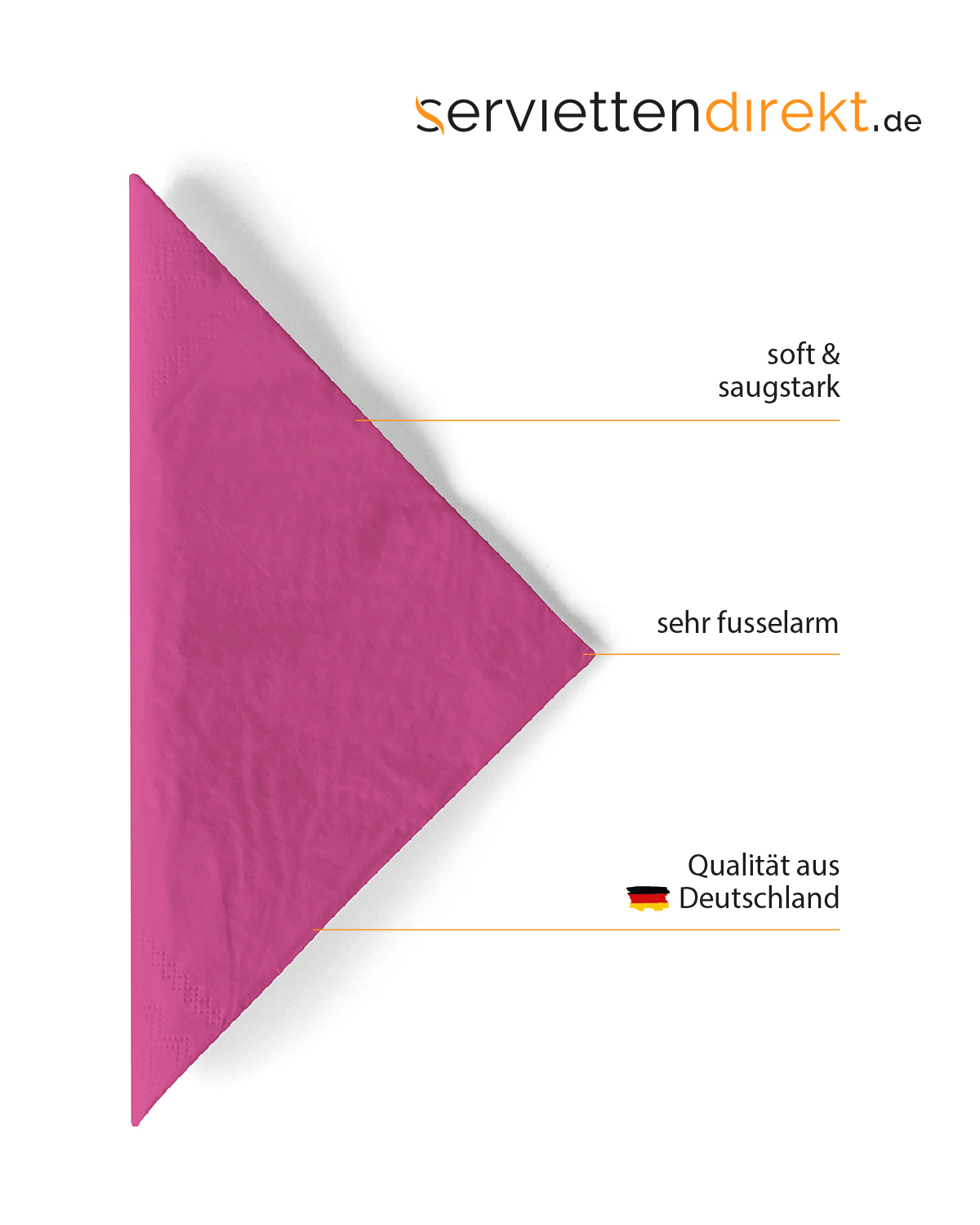Die Tissue Serviette in VIOLETT ist äußerst vielseitig einsetzbar und eignet sich für eine Vielzahl von Veranstaltungen – von Hochzeiten und Jubiläen bis hin zu eleganten Empfängen oder informellen Dinnern. Mit ihrem modernen Design und der hohen Qualität setzt diese Serviette stilvolle Akzente und sorgt für eine unvergessliche Atmosphäre. Holen Sie sich die Tissue Serviette in VIOLETT und verleihen Sie Ihrer Feier eine elegante und luxuriöse Note!