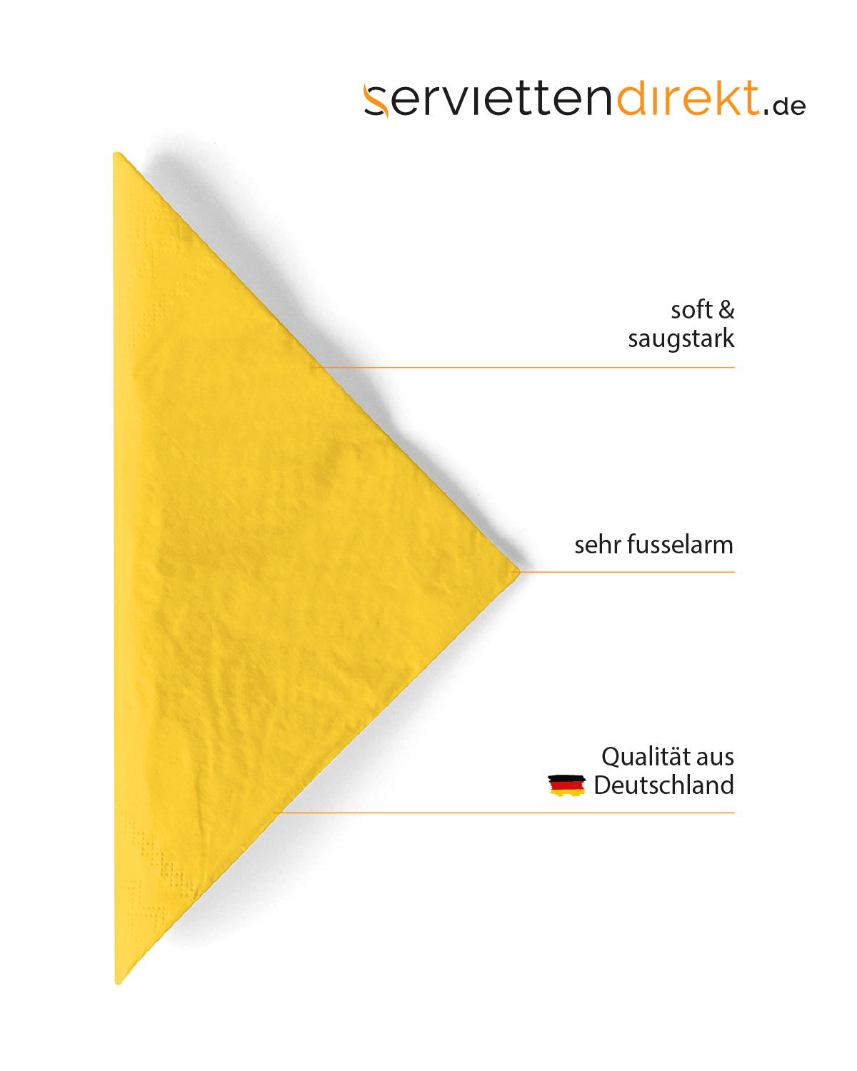 Airlaid Cocktail-Serviette Gelb, 25 x 25 cm, 50 Stück - Mank