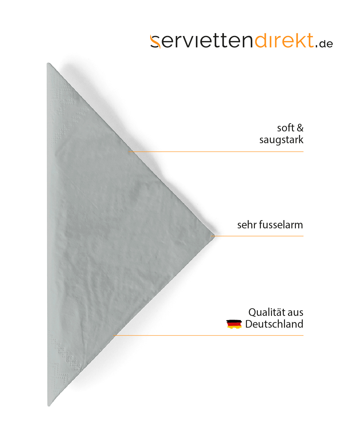 Tissue Cocktail-Serviette Grau, 25 x 25 cm, 3-lagig, 100 Stück - Mank
