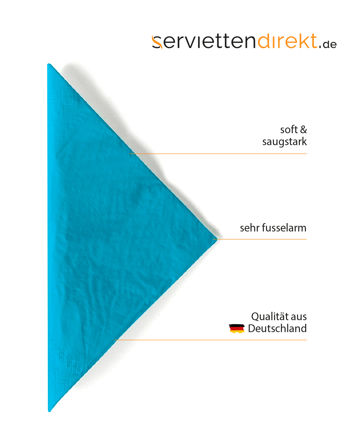 Einen sommerlichen Touch erhält Ihre Tischgestaltung mit den Produkten der Farbe AQUABLAU. Der kräftige Farbton lässt sich nicht nur gut mit weiteren Farben und Designs unseres Sortiments kombinieren, sondern ist auch solo ein Hingucker. Kreieren Sie sommerliche Tischdesigns! Unsere Servietten aus hochwertigem Tissue sind moderne Allrounder für nahezu jede Service-Situation. Das aufwendig hergestellte, dreilagige Material ist saugstark und reissfest, ideal für den Barbetrieb, FrühStücksservice oder das Cafe.