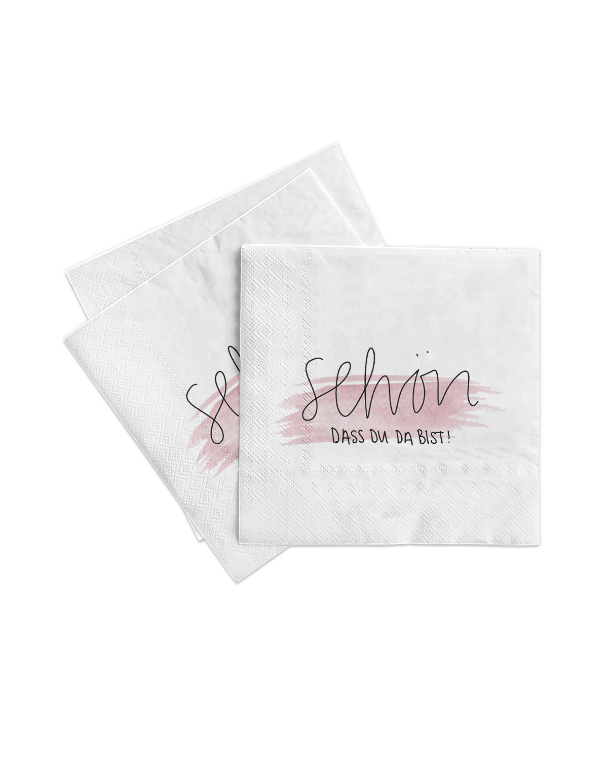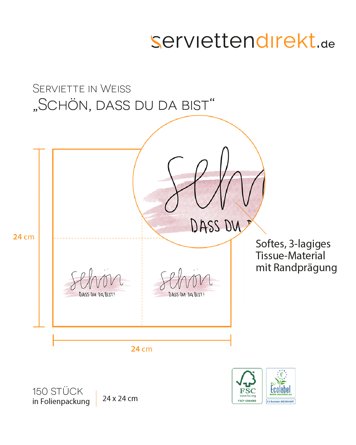 Tissue Serviette - Schön, dass du da bist! - in Recycled Tissue, 24 x 24 cm, 150 Stück - Mank