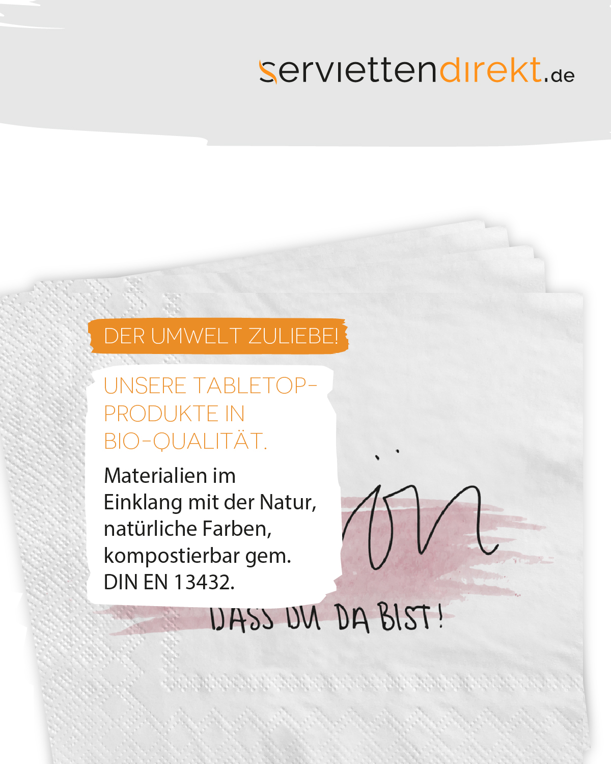 Unsere Servietten aus softem Tissue sind Allrounder für nahezu jede Service-Situation. Ob im Außenbereich, beim Frühstücks-Service oder für den Nachmittagskaffee – Tissue Servietten punkten als Allround-Talente mit Stil!