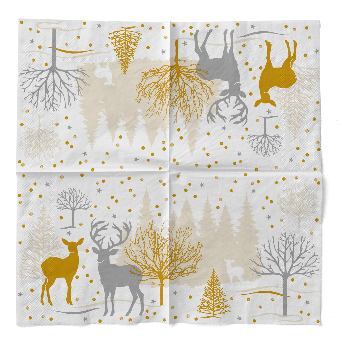 Serviette aus Tissue, Ravin Gold-Weiß, 24 x 24 cm, 150 Stück - Mank