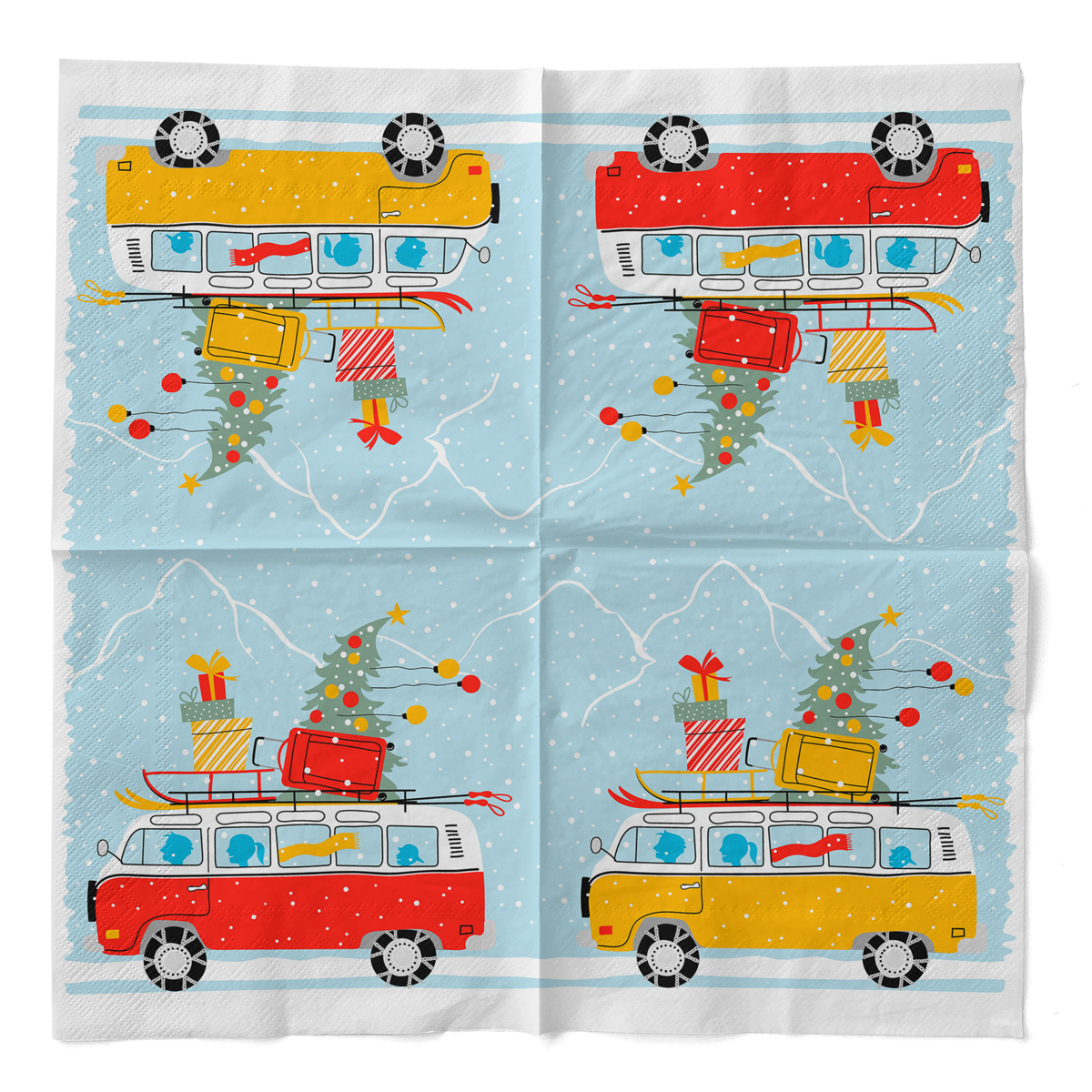 Die Mank Tissue Serviette Winter Holidays verleiht jeder winterlichen Tafel eine festliche Note. Mit ihrem liebevollen Design in Rot, Grün und Weiß eignen sich die Servietten perfekt für Advent, Nikolaus, Weihnachtsfeiern oder gemütliche Winterabende im Kreise der Familie.